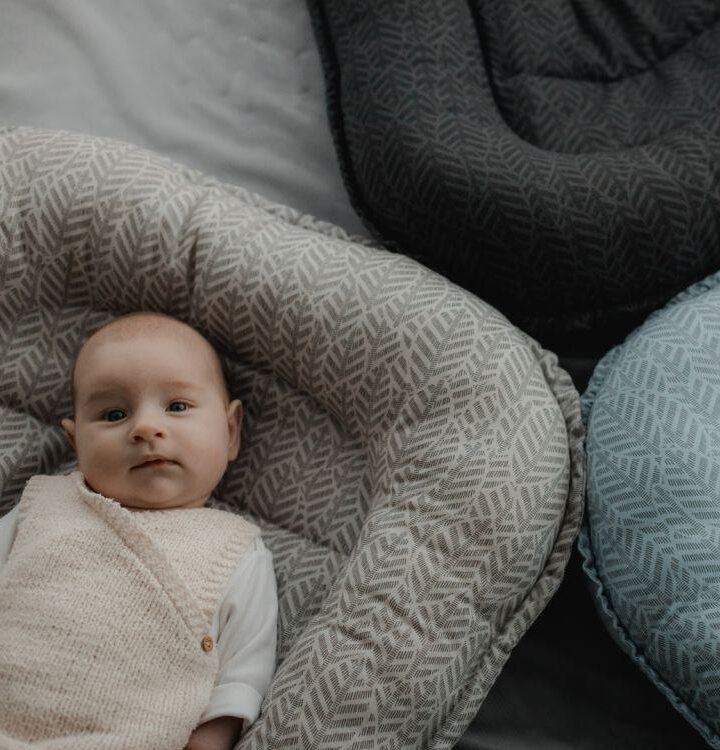 • na kavču – gnezdo opravlja funkcijo zaščite otroka pred obračanjem, seveda pod pogojem, da se otrok še ne premika in ne sedi,