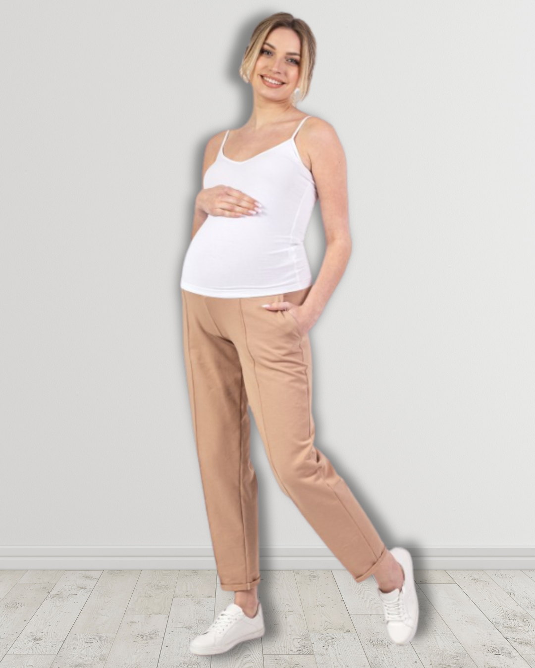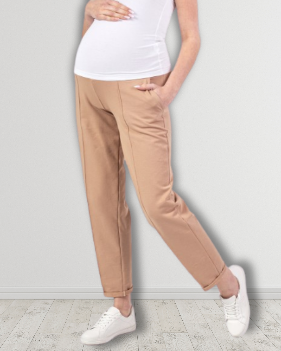 Izjemno udobne in klasične nosečniške hlače iz mehke in raztegljive bombažne tkanine, ki se lepo prilega telesu in omogoča celodnevno udobje. Material je prijeten na otip, diha in ne omejuje gibanja, zato so hlače popolna izbira za vsak dan.