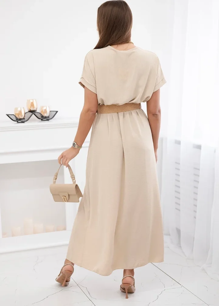 Obleka za dojenje z okrasnim pasom.